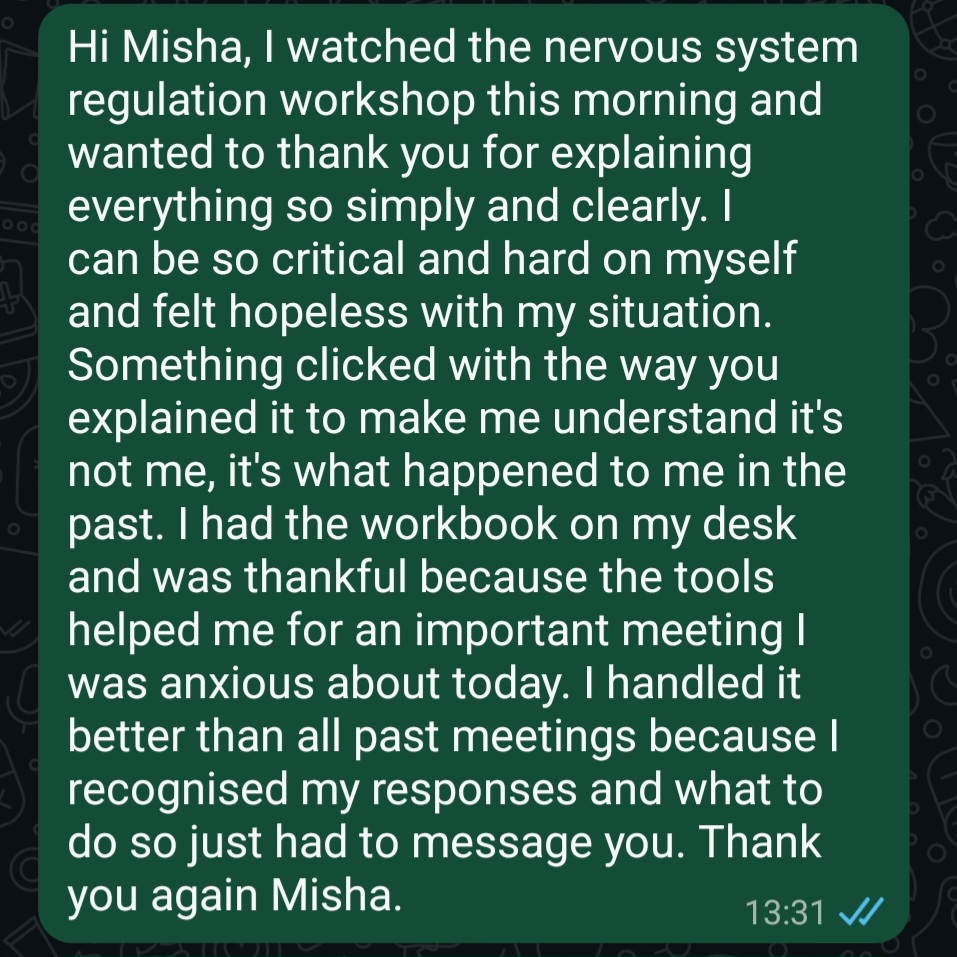 Regulation gives you your energy, your clarity, your health and your emotional freedom back.
